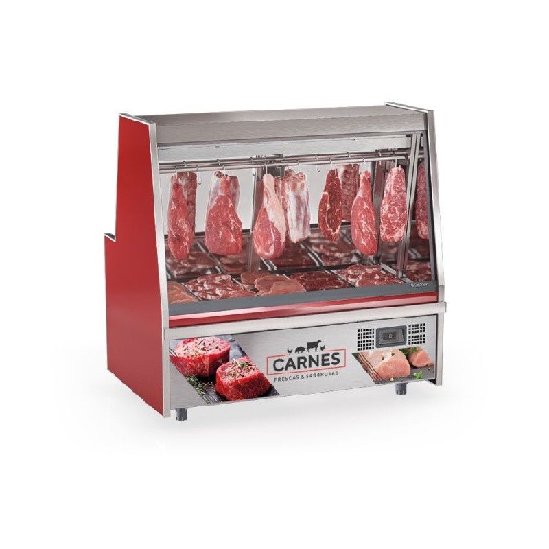 O balcão de carnes para açougue da Lojas Tropical possui uma estrutura robusta e resistente, que garante a durabilidade do equipamento e a segurança dos produtos armazenados.
