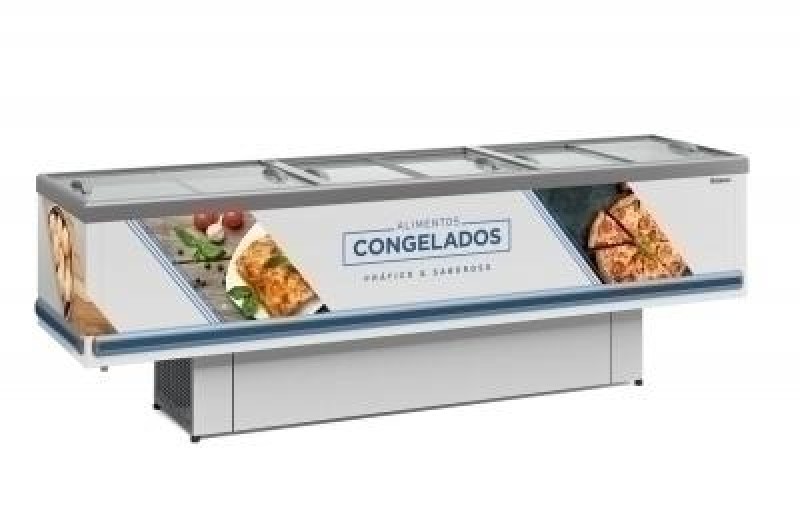 O expositor ilha é um equipamento refrigerado com estrutura aberta, ideal para armazenar e exibir produtos alimentícios, como carnes, queijos e laticínios, de maneira organizada.